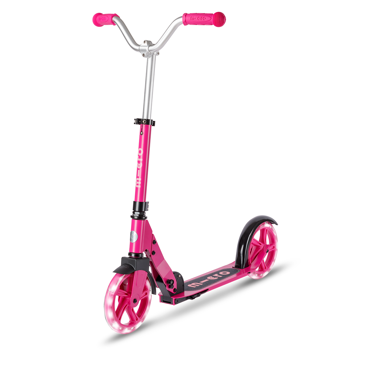 Der Micro Cruiser LED in Berry Red bietet Fahrspaß mit Stil. Seine großen LED-Rollen und der breite Lenker sorgen für Stabilität und Komfort – ideal für Kinder, die gerne flott und sicher unterwegs sind.
