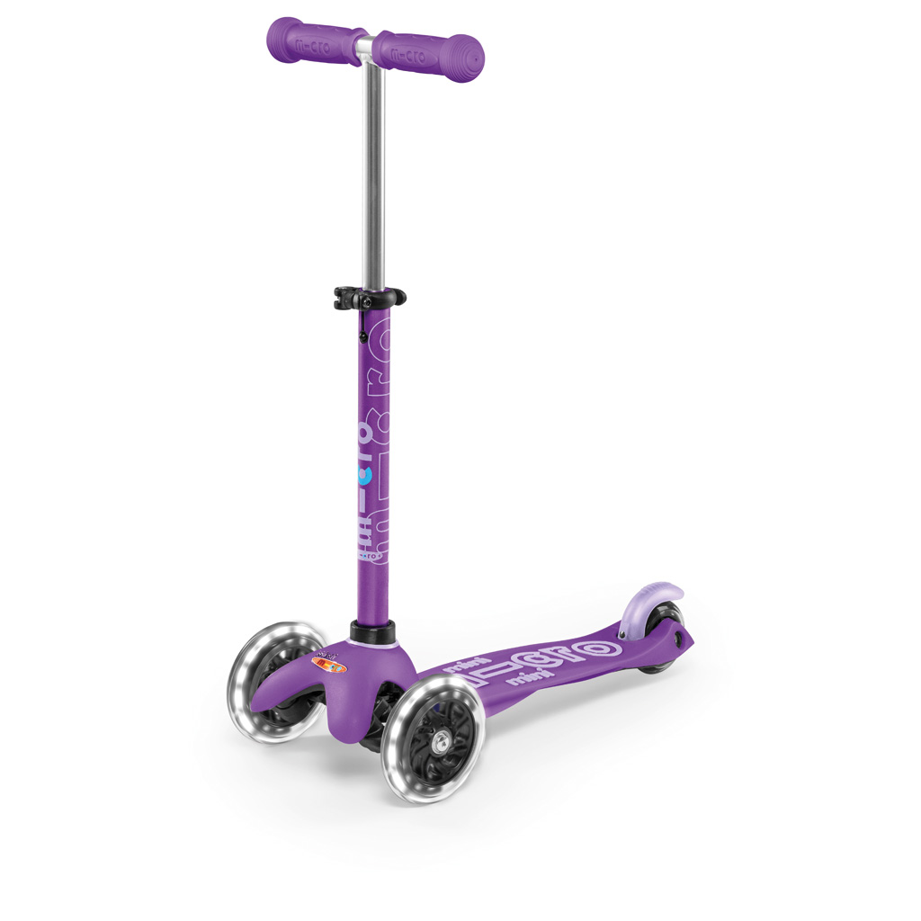 Aufgepasst – das Mini Micro Deluxe erstrahlt neu mit LED-Licht im Reifen.