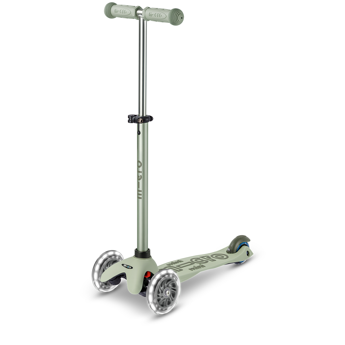 Der Mini Micro Deluxe Rock & Go LED in stylischem Olive Sage ist der perfekte 2-in-1-Scooter für die Kleinsten. Erst als Wippfahrzeug nutzbar und später als klassischer Scooter – mit leuchtenden LED-Rollen für extra Spaß und Sicherheit.